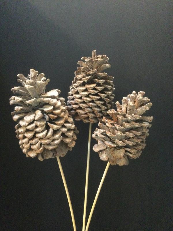 Pine Cone Large White Tipped ( 3 Stem)