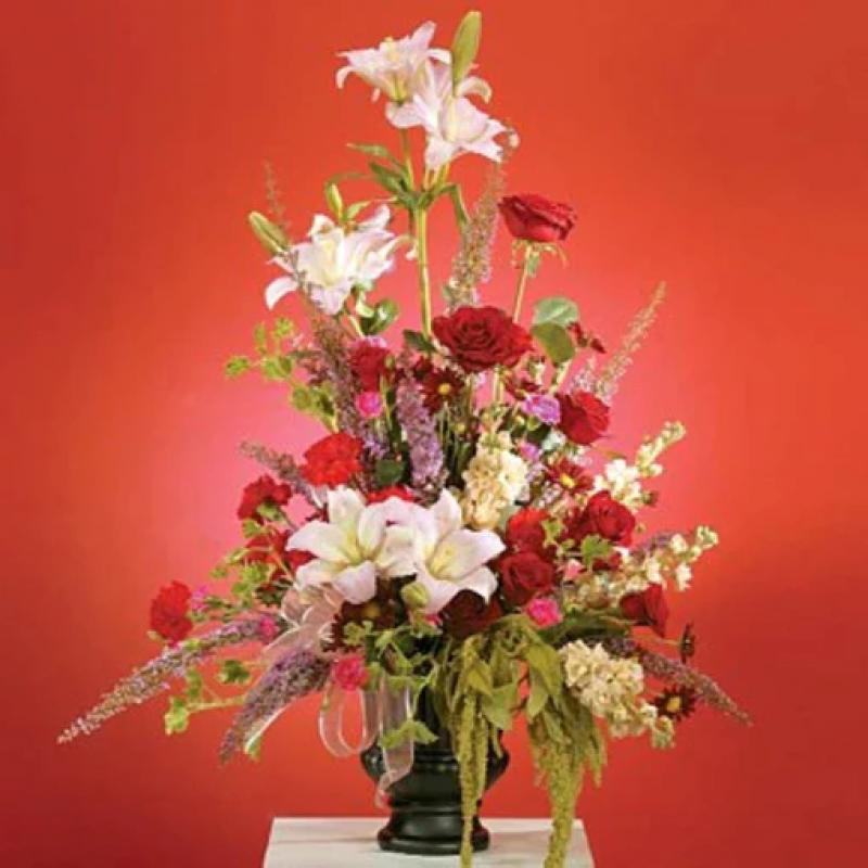 Glorify a life well-lived with this magnificent spray of pink lilies and roses, a radiant, reflective celebration of beauty and love