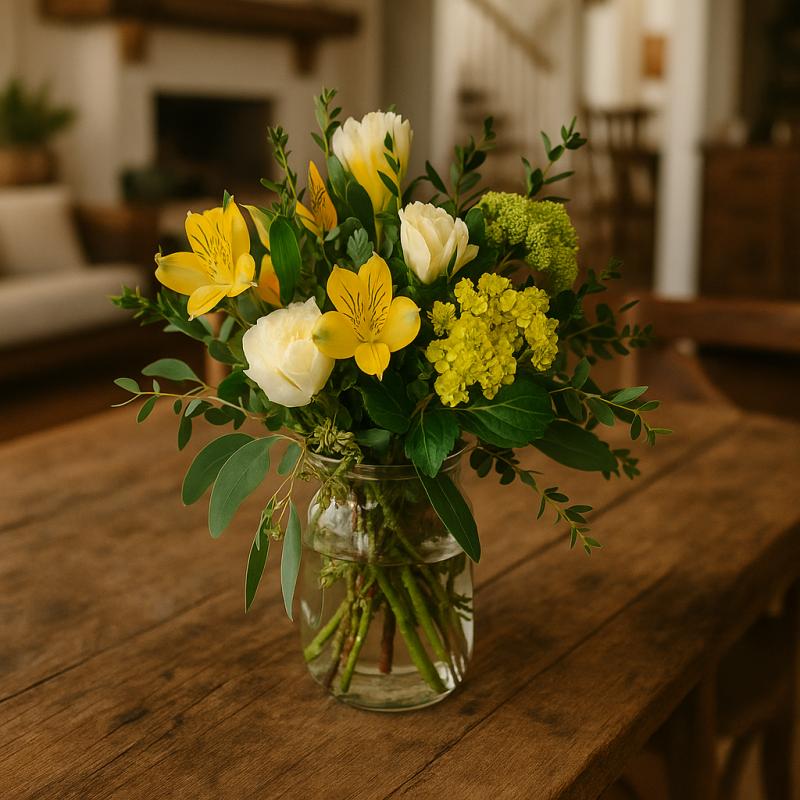This cute array of yellow alstromeria and mini green hydrangeas will brighten anyone's day!