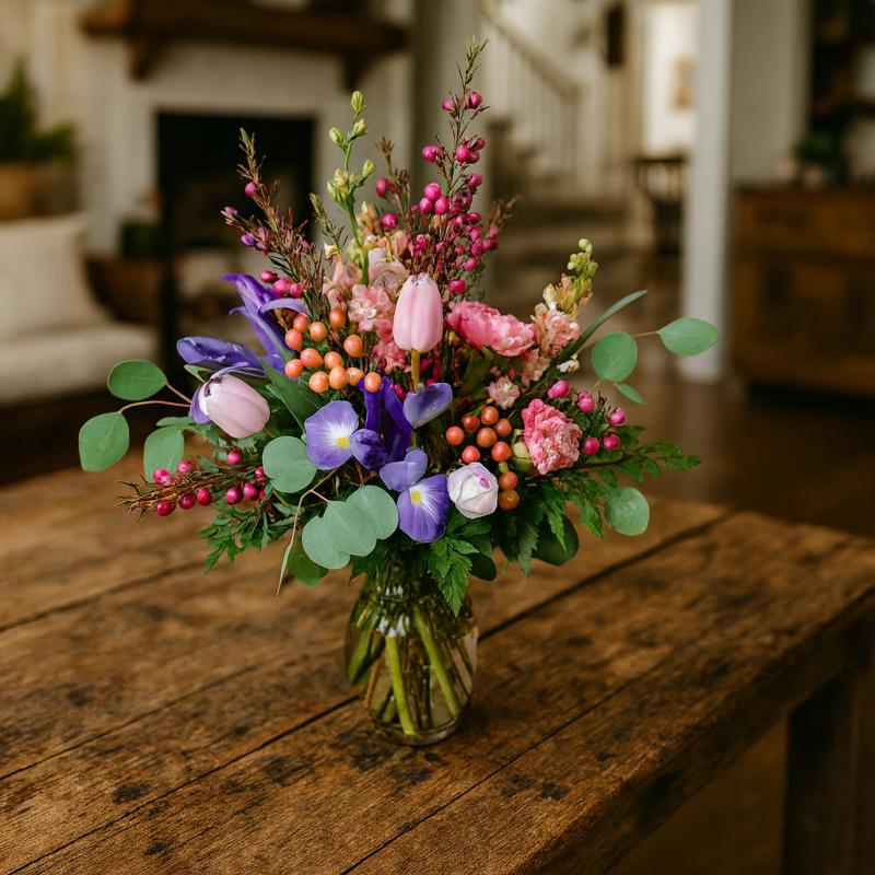 Send this lovely vase of spring flowers to anyone who needs some color in their day. Beautiful mixture of flowers and bright colors.